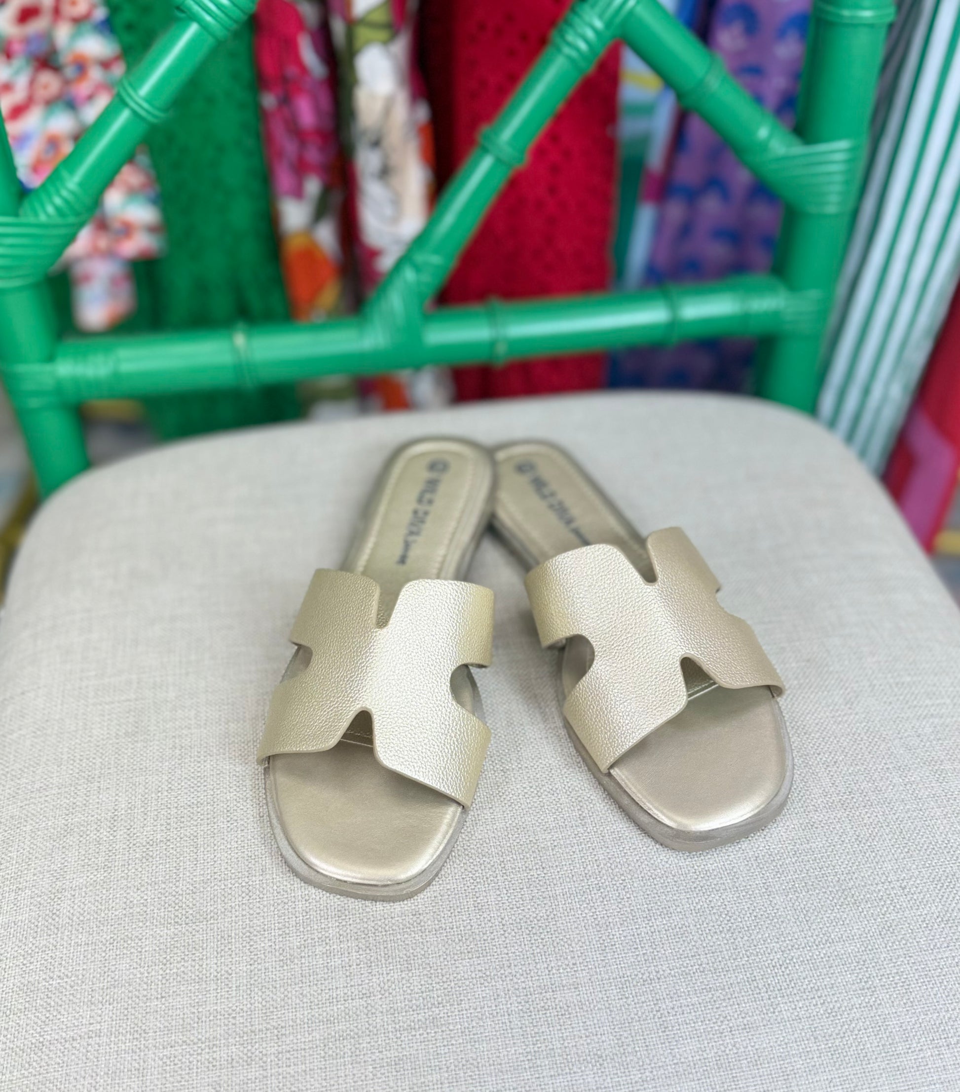 ✨SATURDAY STEAL DEAL✨ Come On Over Pebbled Gold H Slide Sandals