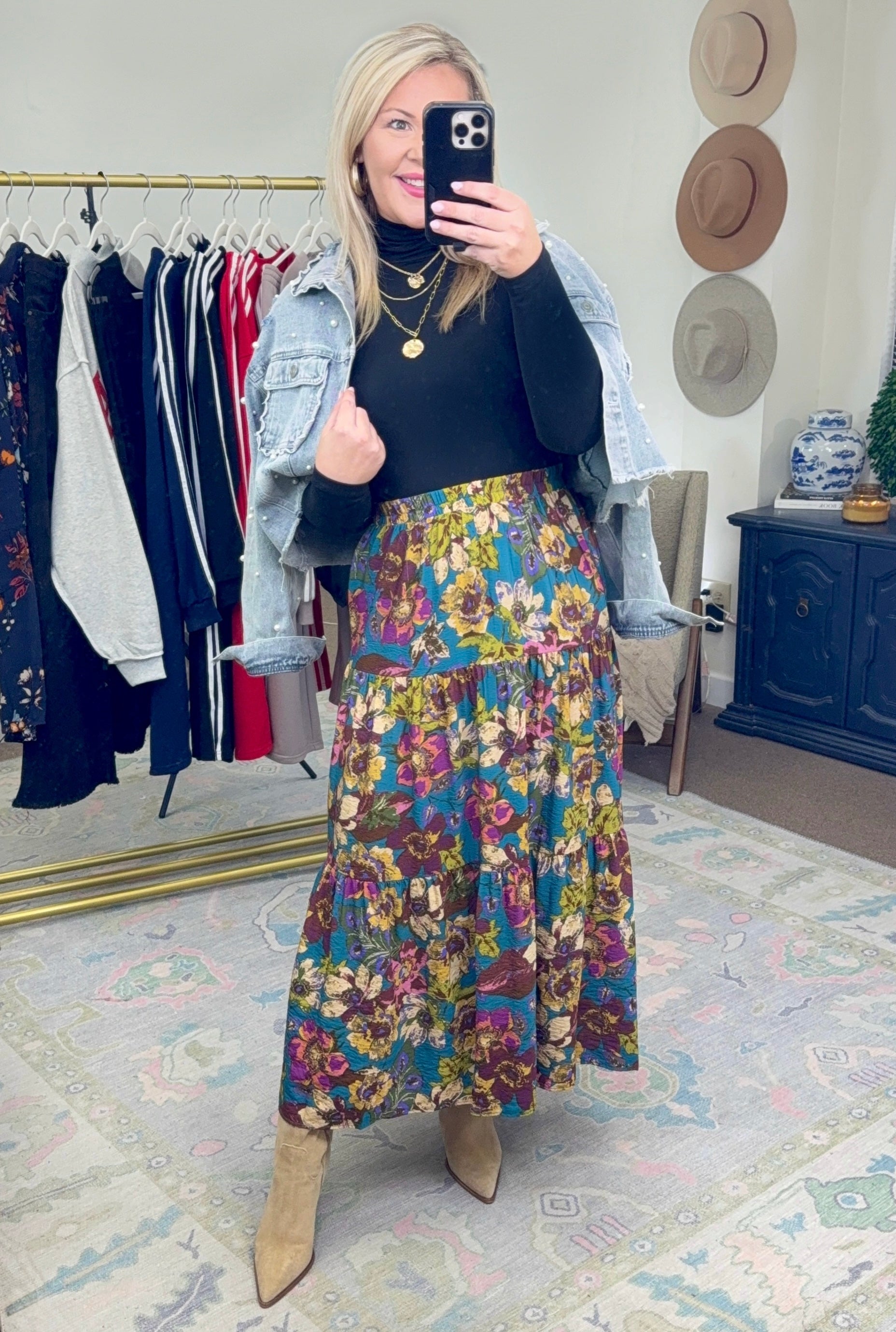 We LOVE a maxi moment and this elastic waist print skirt is not only fun but it’s SO flattering!