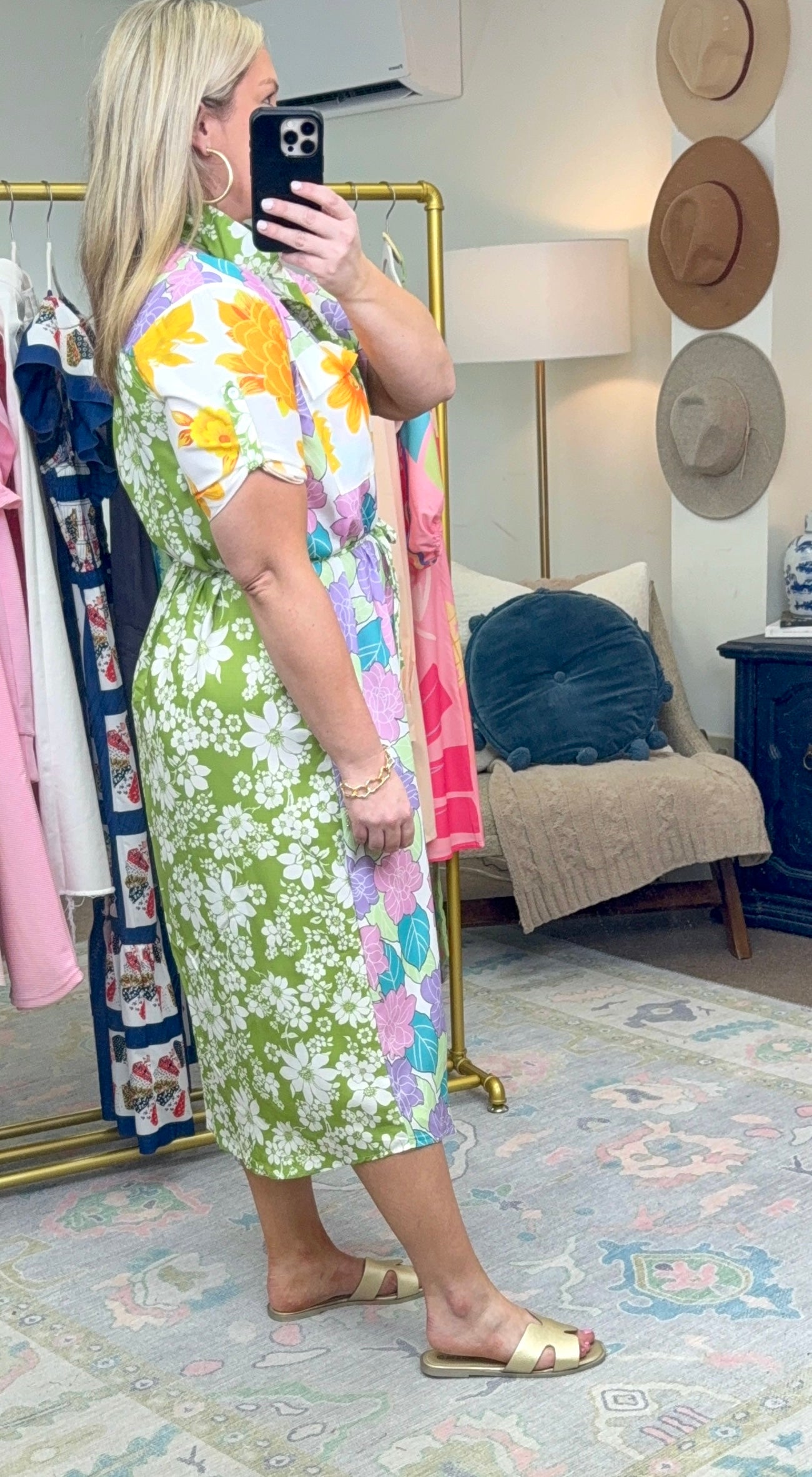 Polished but fun, this printed midi dress is a retro statement to make from spring to fall.