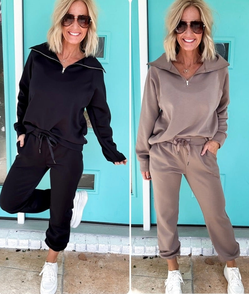 Meet your new fave essential: the dreamy half-zip pullover and jogger set, designed for ultimate comfort and style.