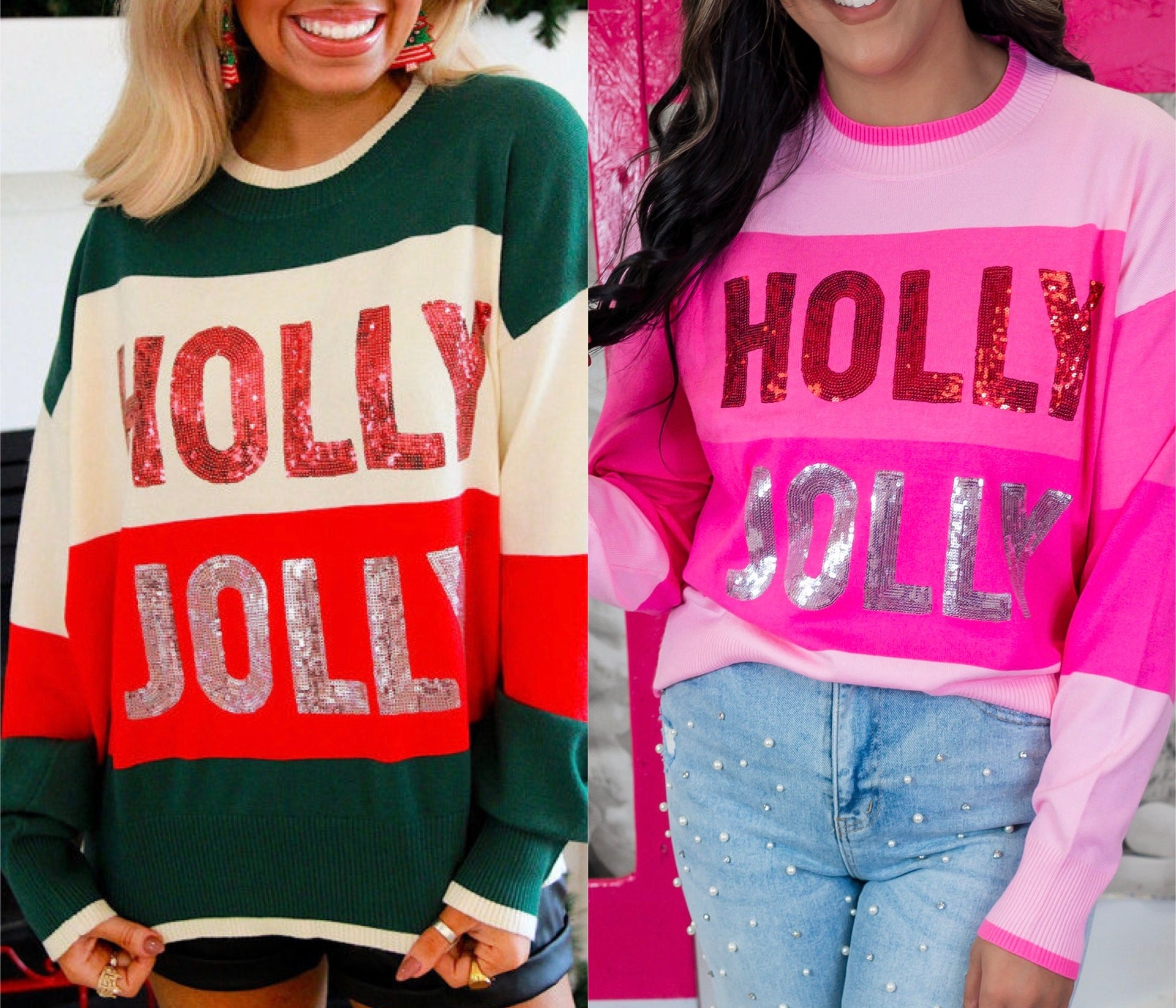 Bring the cheer and sparkle all season long in our Holly Jolly Sequin Sweater!