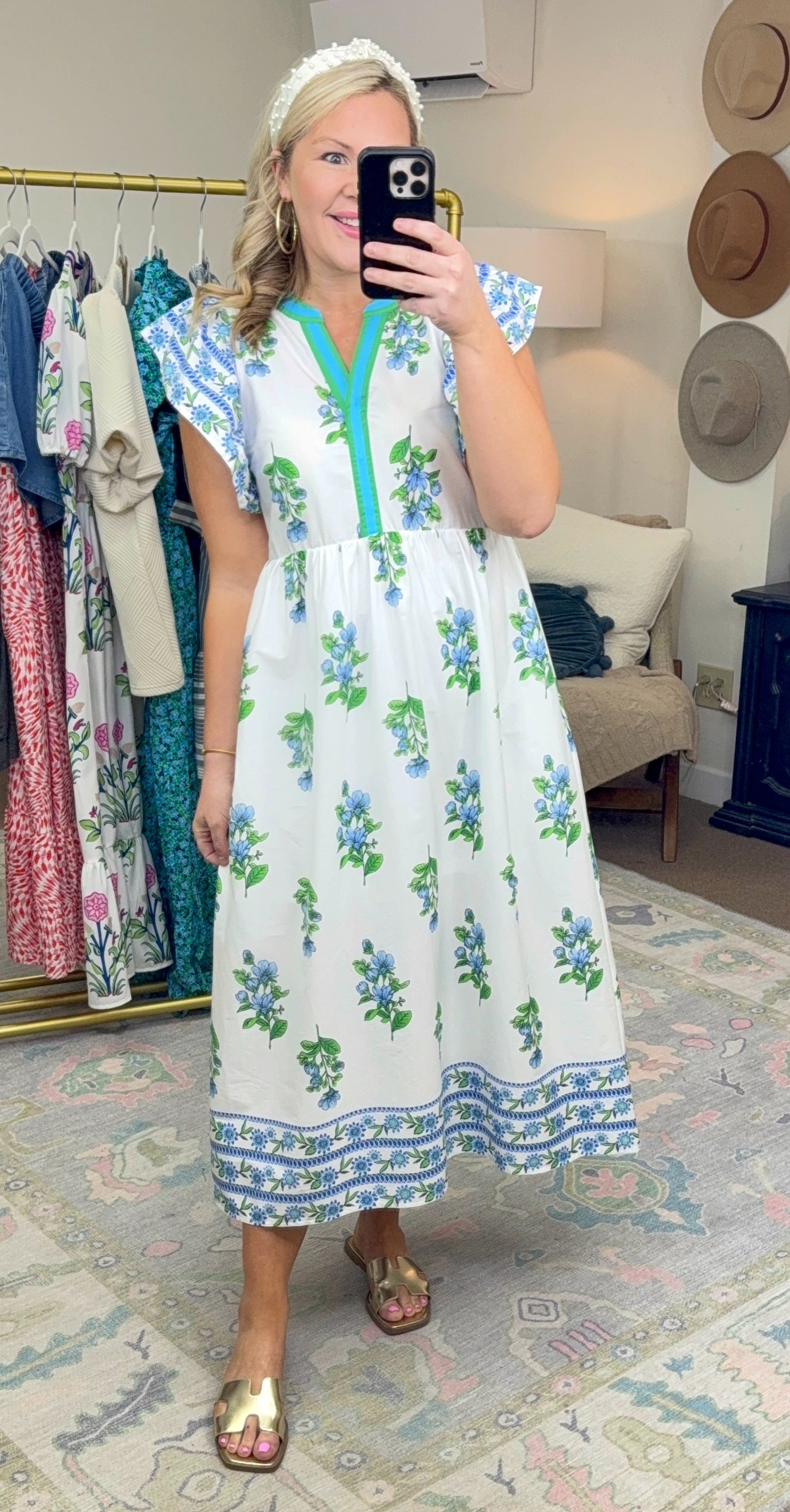 I Do Declare Printed Flutter Sleeve Midi Dress