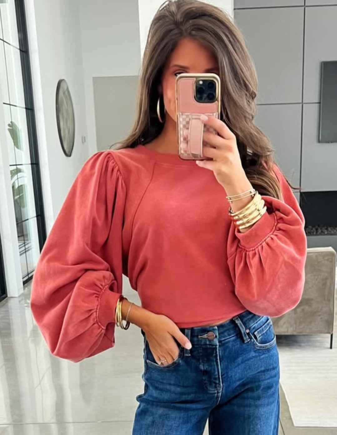 Relaxed, soft & perfectly effortless—this balloon sleeve crewneck gives cozy a feminine upgrade. Its gathered shoulder detail adds a touch of style while keeping the comfort you crave. From coffee runs to slow weekends, this piece was made for your everyday moments.