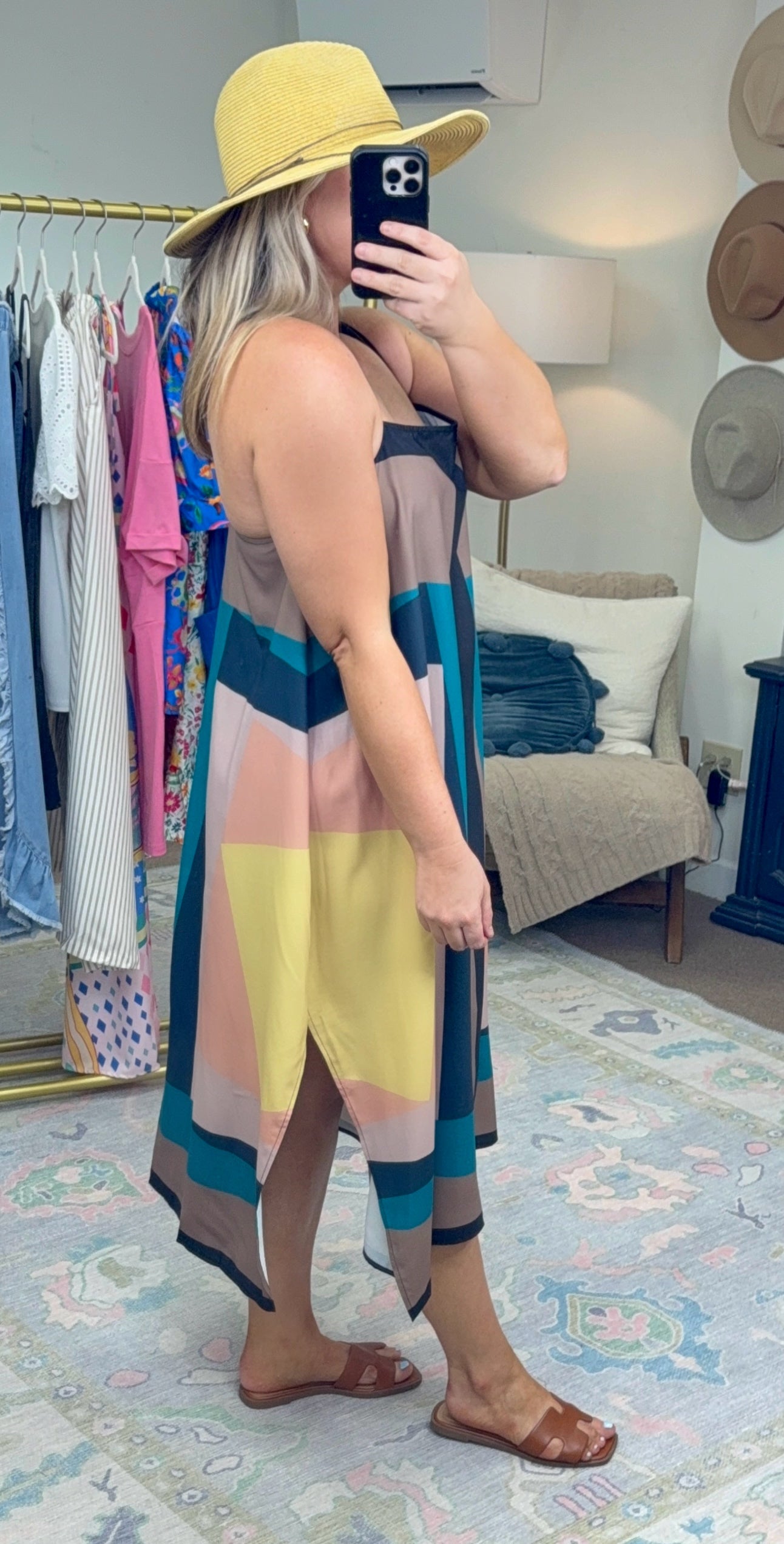 The ultimate warm weather throw-on-go dress! Flowy and carefree, this lightweight piece is fab with sandals to block heels.