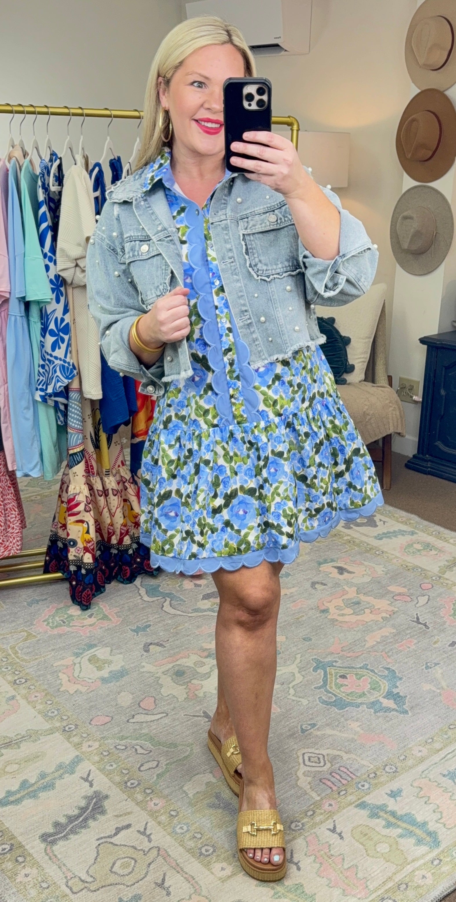 Sweet Gal Scallop Pearl Embellished Denim Jacket